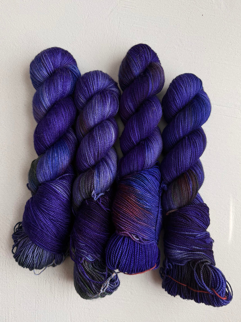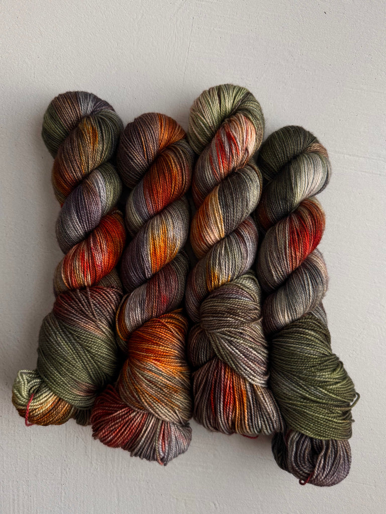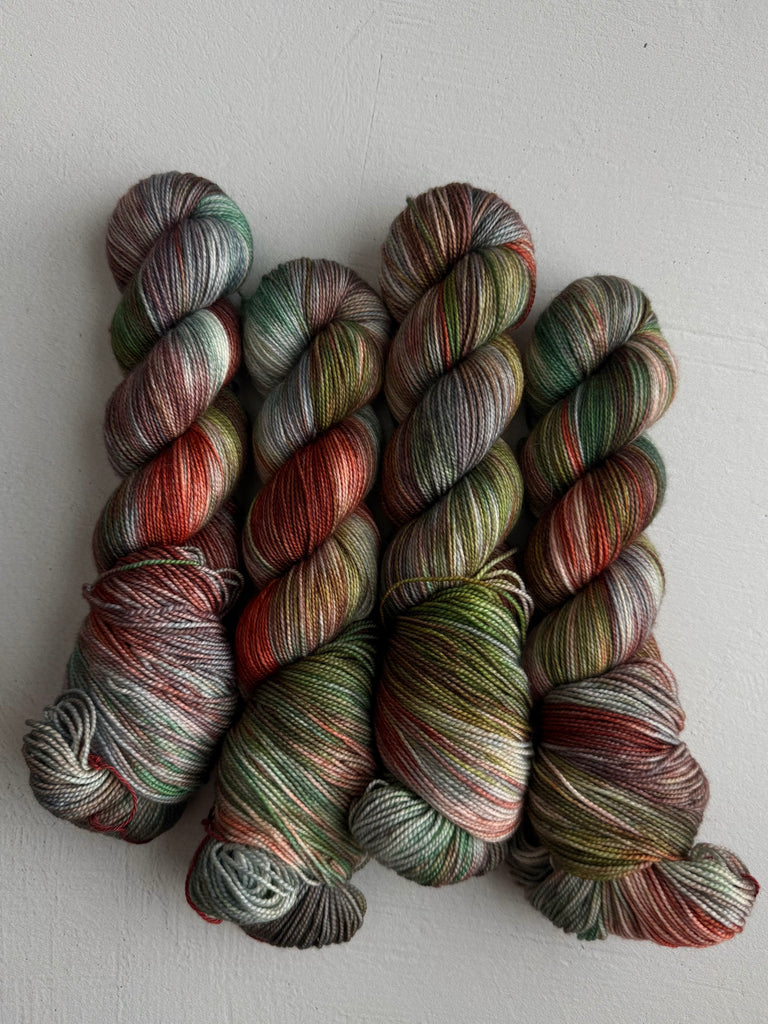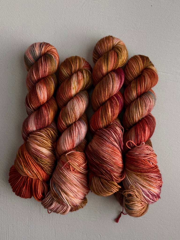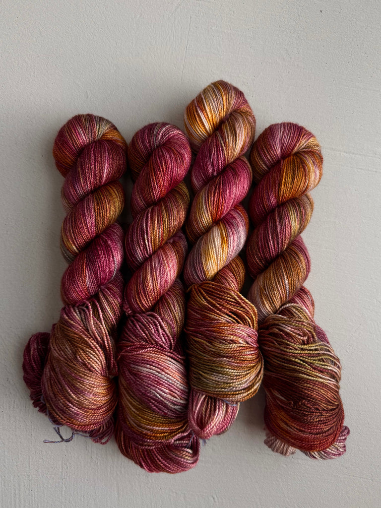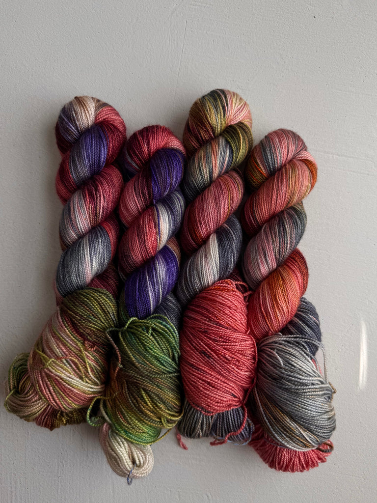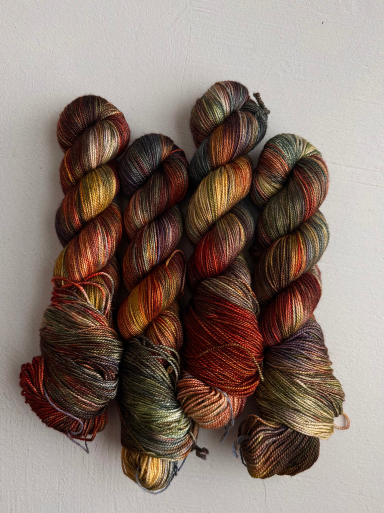 Take home a completely unique skein! Colorways shown below come from recipe trials, experiments, development, or just having fun. They're truly one of a kind and never to return, and perfect for a special project.