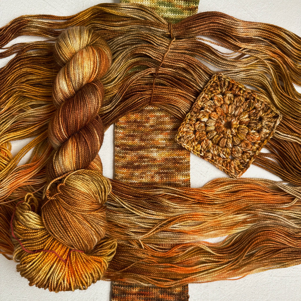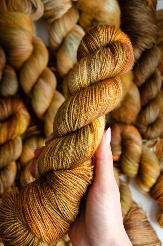 80% superwash merino, 20% silk 2 ply, 400 yards per 100g full sized skein, 80 yards per 20g mini skein