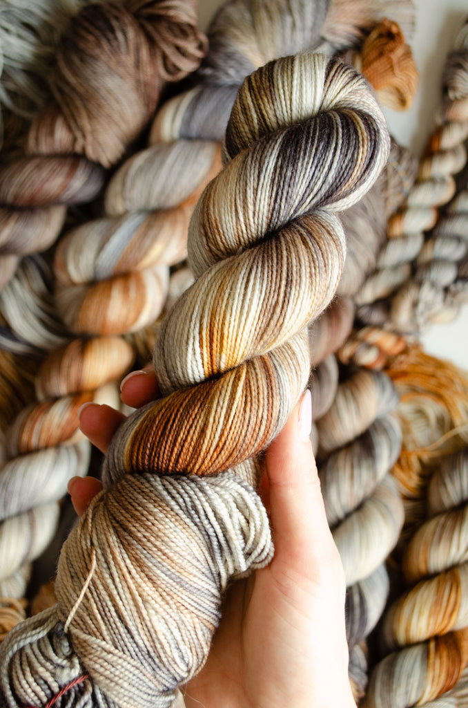 60% superwash merino, 20% silk, 25% yak43 ply, 231 yards per 100g skein