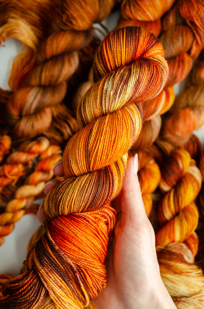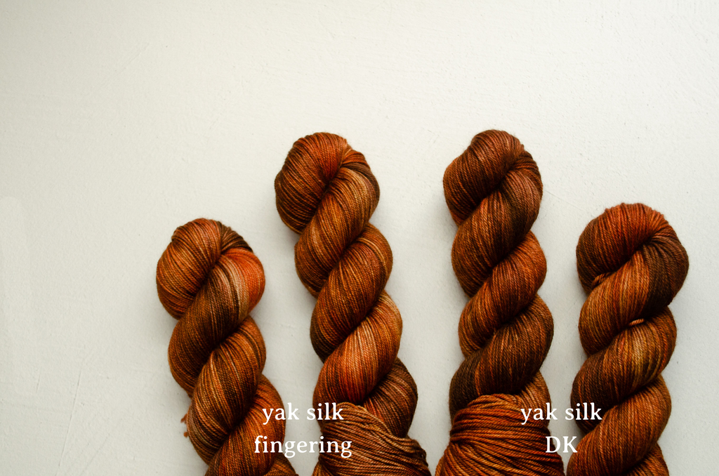 60% superwash merino, 20% silk, 25% yak43 ply, 231 yards per 100g skein