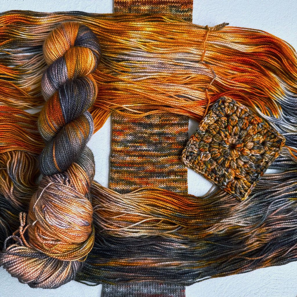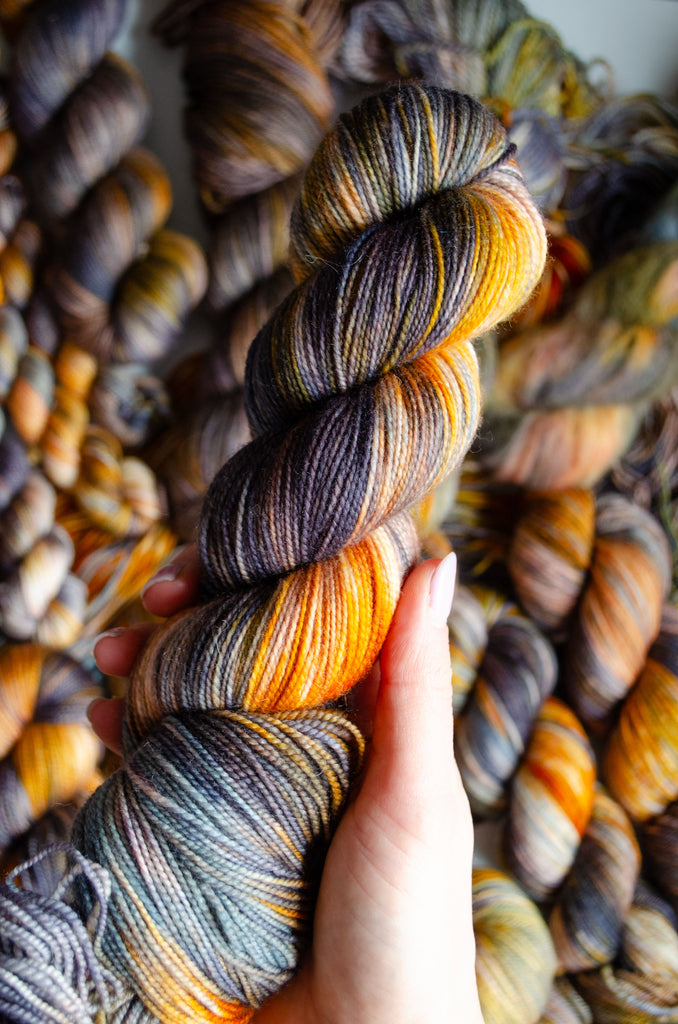 80% superwash merino, 20% silk 2 ply, 400 yards per 100g full sized skein, 80 yards per 20g mini skein