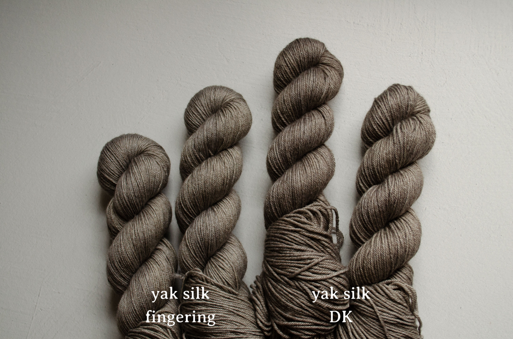 60% superwash merino, 20% silk, 25% yak43 ply, 231 yards per 100g skein