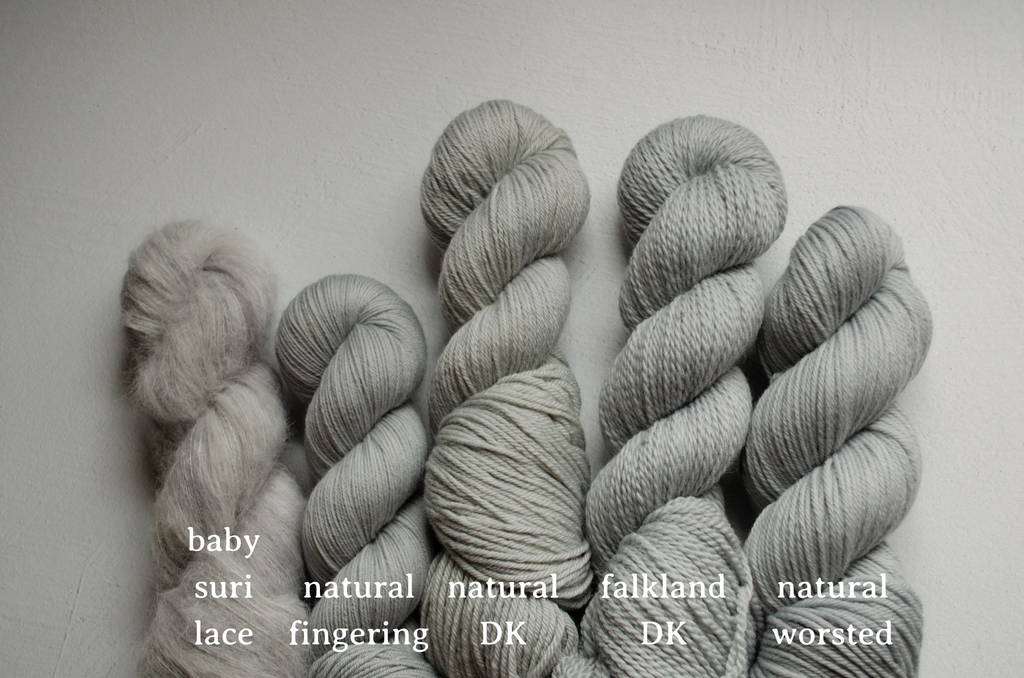 70% falkland wool, 15% baby alpaca, 15% silk 2 ply, 268 yards per 100g skein